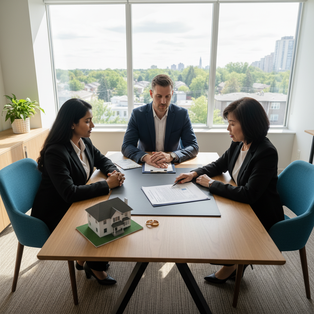 Ontario guide to property division after divorce—equalization, matrimonial home, exclusions, pensions, debts, and timelines—from a Brampton family law team.